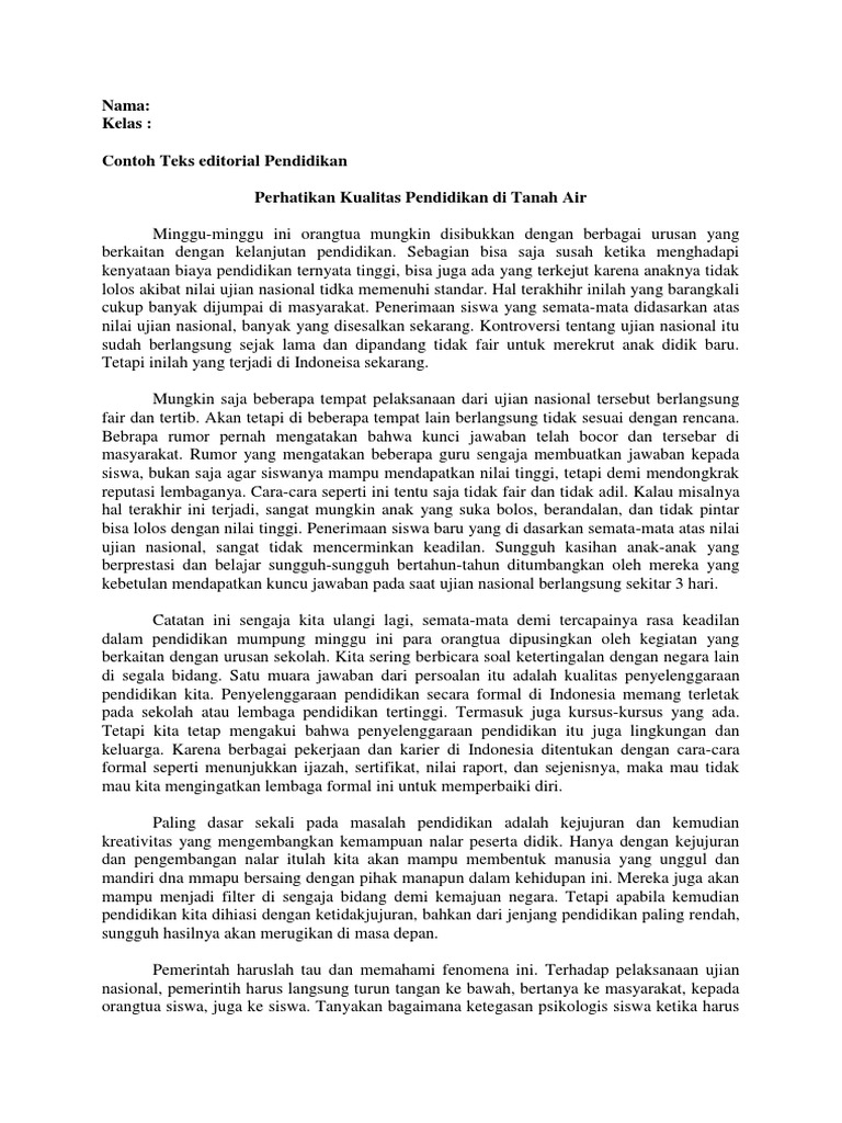 Terimakasih ad dokter umum 11:55 am bahasa indonesia, pendidikan you might also like. Di dalam teks editorial, terdapat fakta dan opini dari penulis yang ditulis. Namun pada prakteknya, banyak sekolah yang belum sepenuhnya menerapkan sebuah sistem belajar dan mengajar, belum membuat lingkungannya nyaman. Ada 3 bagian atau struktur teks editorial ini, di antaranya: Contoh teks anekdot beserta strukturnya. Berbagai topik yang banyak bisa kamu pilih untuk dijadikan sarana yang membuatmu semakin. Sebagian editorial dibiarkan begitu saja sesuai dengan artikel aslinya di koran. Jika masih bingung, kamu bisa mencari contohnya. Jenis teks yang satu ini merupakan salah satu jenis yang paling sering digunakan. Jika ingin contoh baru, setiap kali anda membeli surat kabar, pasti di sana selalu ada. Untuk itulah pemerintah menggaungkan program mitigasi untuk setiap daerah. Contoh teks editorial tentang kesehatan. Pemerintah bisa semakin aktif menggerakkan dan membiayai tenaga pendidik sukarela untuk membantu mengembangkan pendidikan di sana.